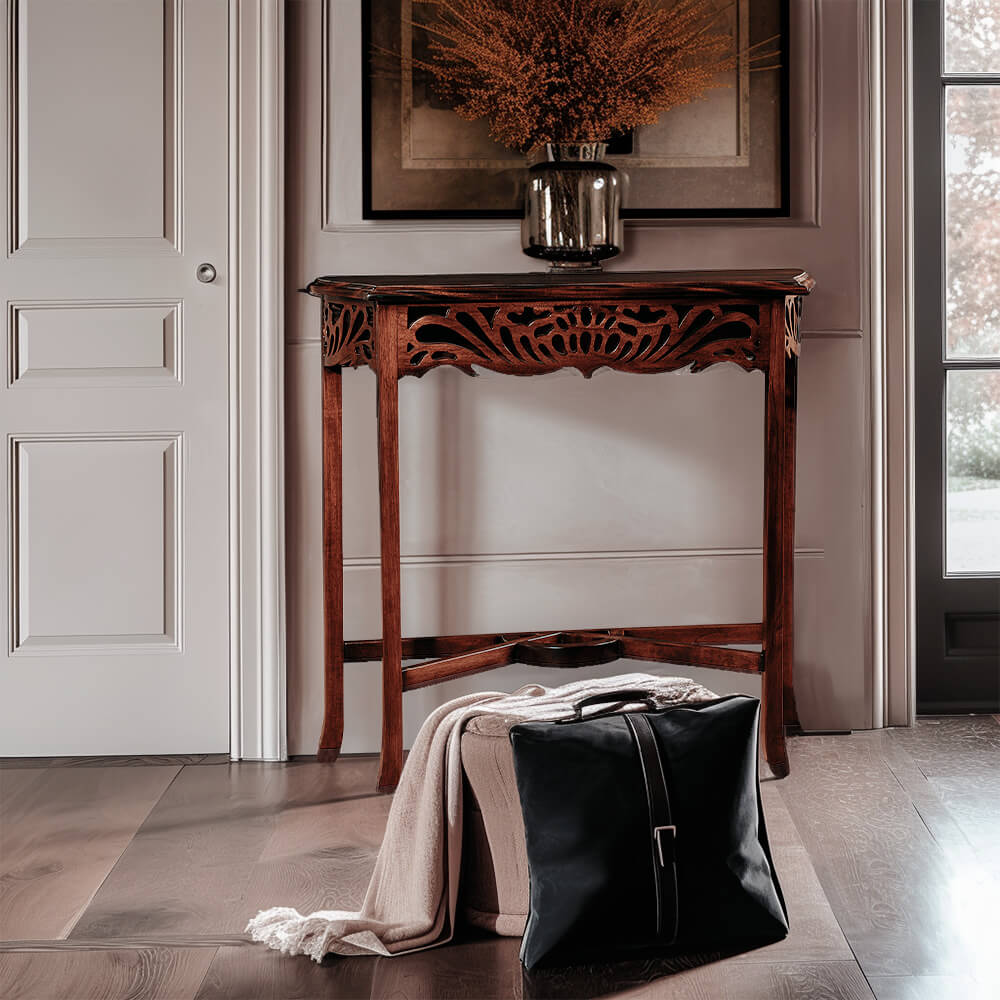 La madera de caoba utilizada en la fabricación de la consola modelo «J» le confiere un acabado cálido y acogedor, ideal para crear una atmósfera acogedora en la entrada de tu hogar. Además, al estar realizada por expertos artesanos, garantiza una calidad excepcional y una atención al detalle única.