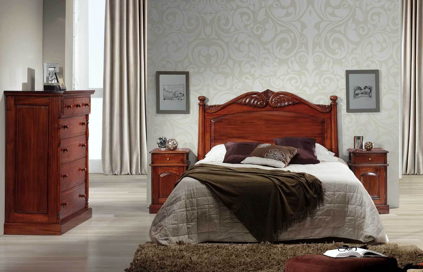 El cabecero que os proponemos es de corte victoriano, por lo que es ideal para los amantes del mobiliario clásico. Su fabricación artesanal, en madera de caoba maciza, hace que sea un dormitorio muy duradero, que vivirá junto a vosotros durante una larga temporada y siempre en buen estado.