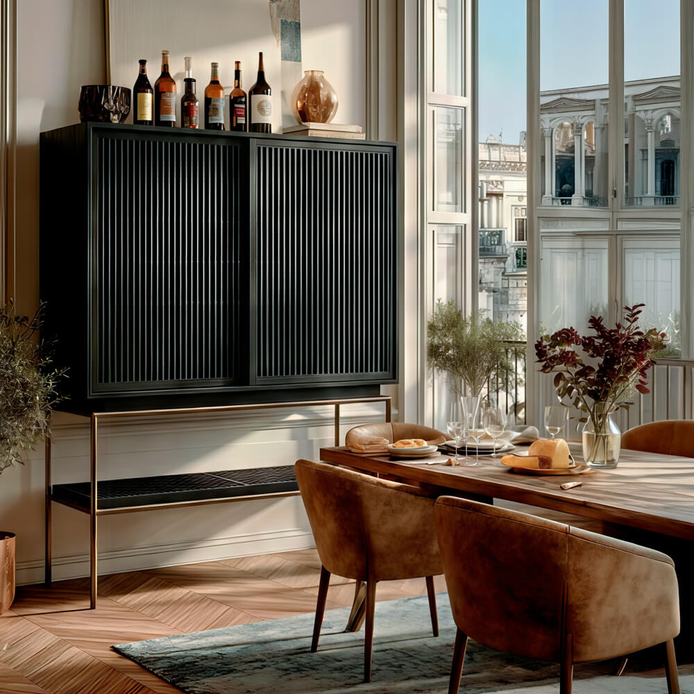 ¡Libera la nostalgia de la artesanía tradicional con el Mueble Bar Gabinete Tellen! Esta exquisita pieza de mobiliario étnico moderno seguramente evocará el encanto del viejo mundo y el equipaje romántico de un pasaje largo. Hecho a mano con atención al detalle, este mueble bar lucirá hermoso en cualquier hogar y se puede usar para almacenar sus bebidas favoritas, lo que lo convierte en un complemento funcional y elegante para su espacio. ¡No te pierdas esta obra de arte atemporal!