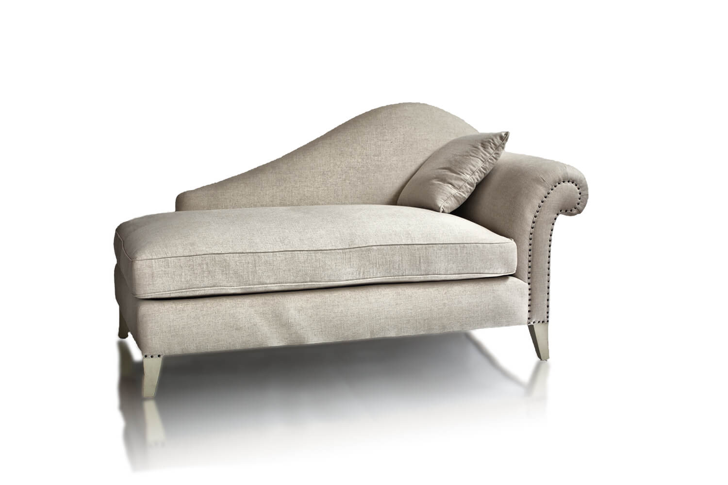 El tapizado en tela de mezcla de lino y poliéster de la imagen es una elección perfecta para complementar su estilo clásico y sofisticado. La chaise longue meridienne es una pieza versátil que puede ser colocada en cualquier habitación de la casa, desde la sala de estar hasta el dormitorio principal. Sin duda, se convertirá en el mueble favorito para descansar y disfrutar de su elegancia y comodidad.