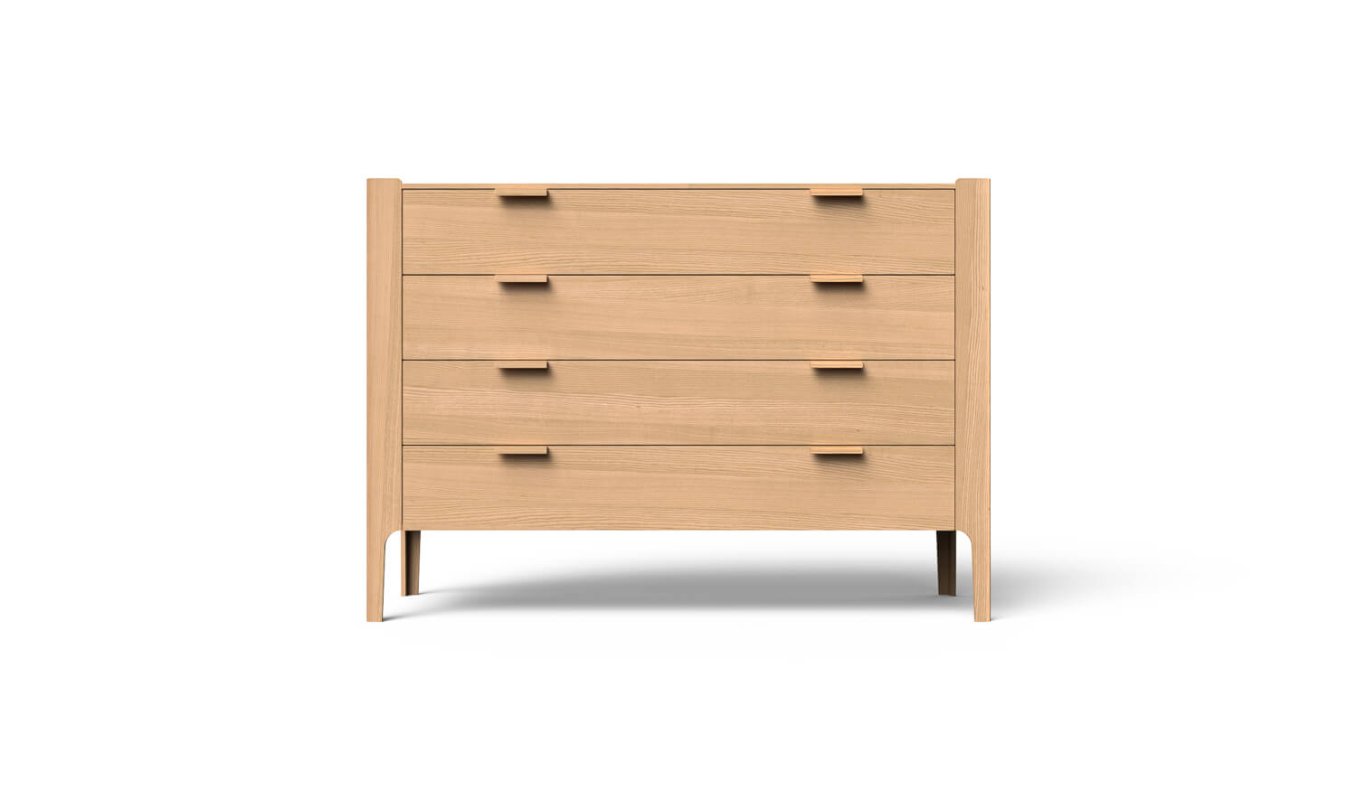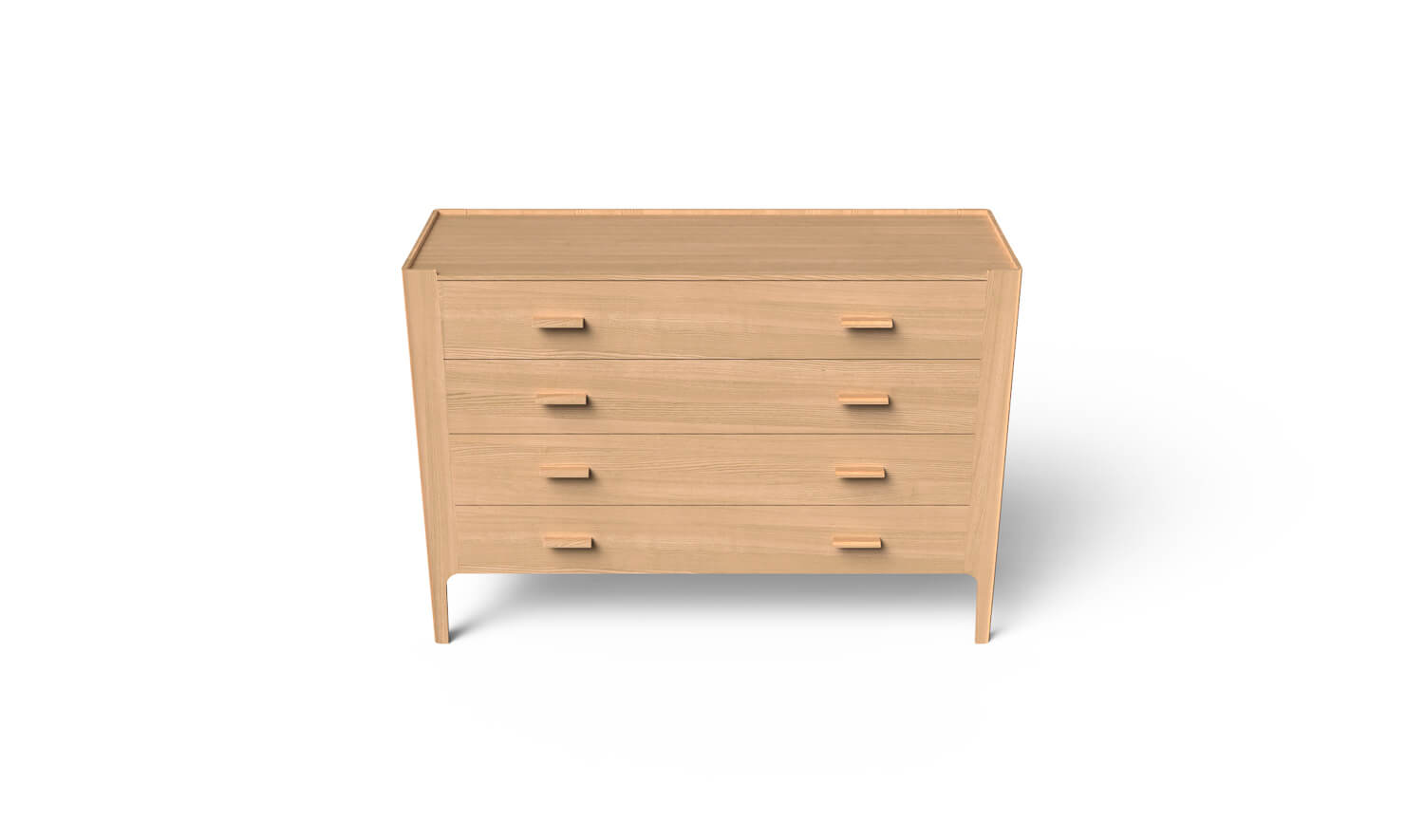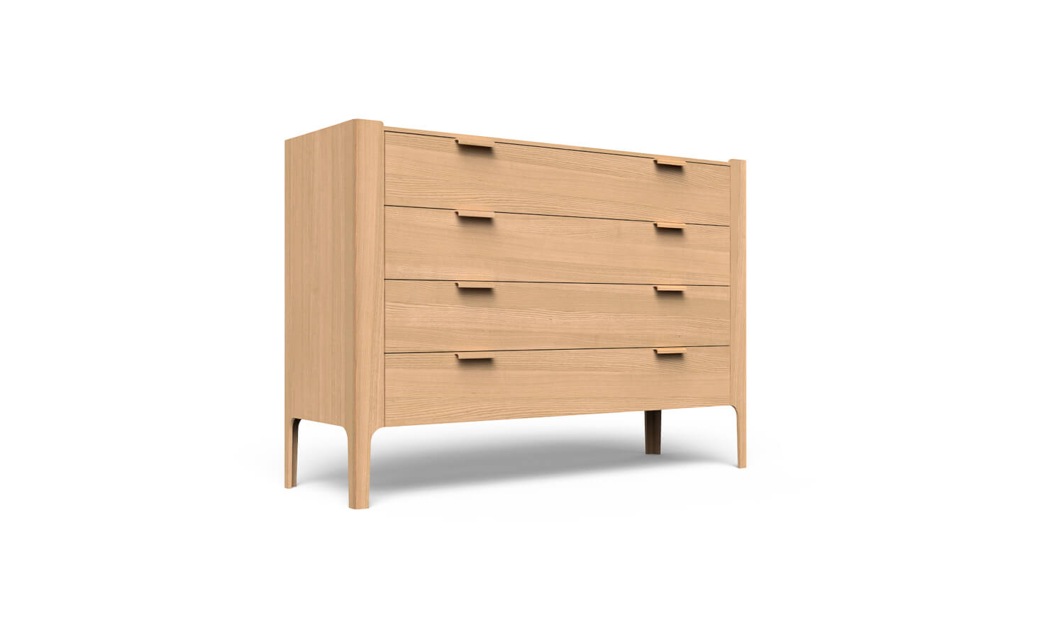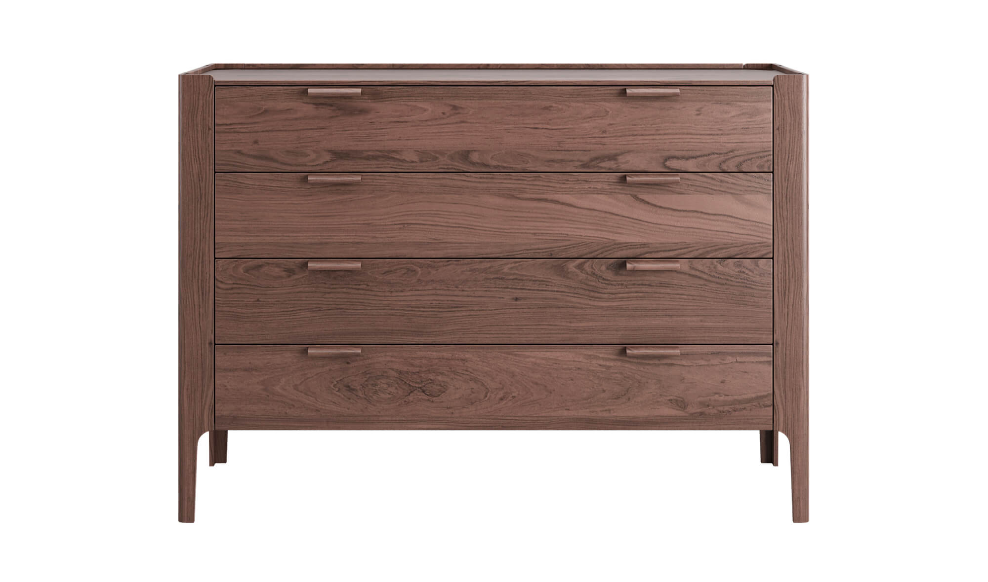 Cómoda 4 cajones realizado en chapa natural de nogal o roble y DM lacado.