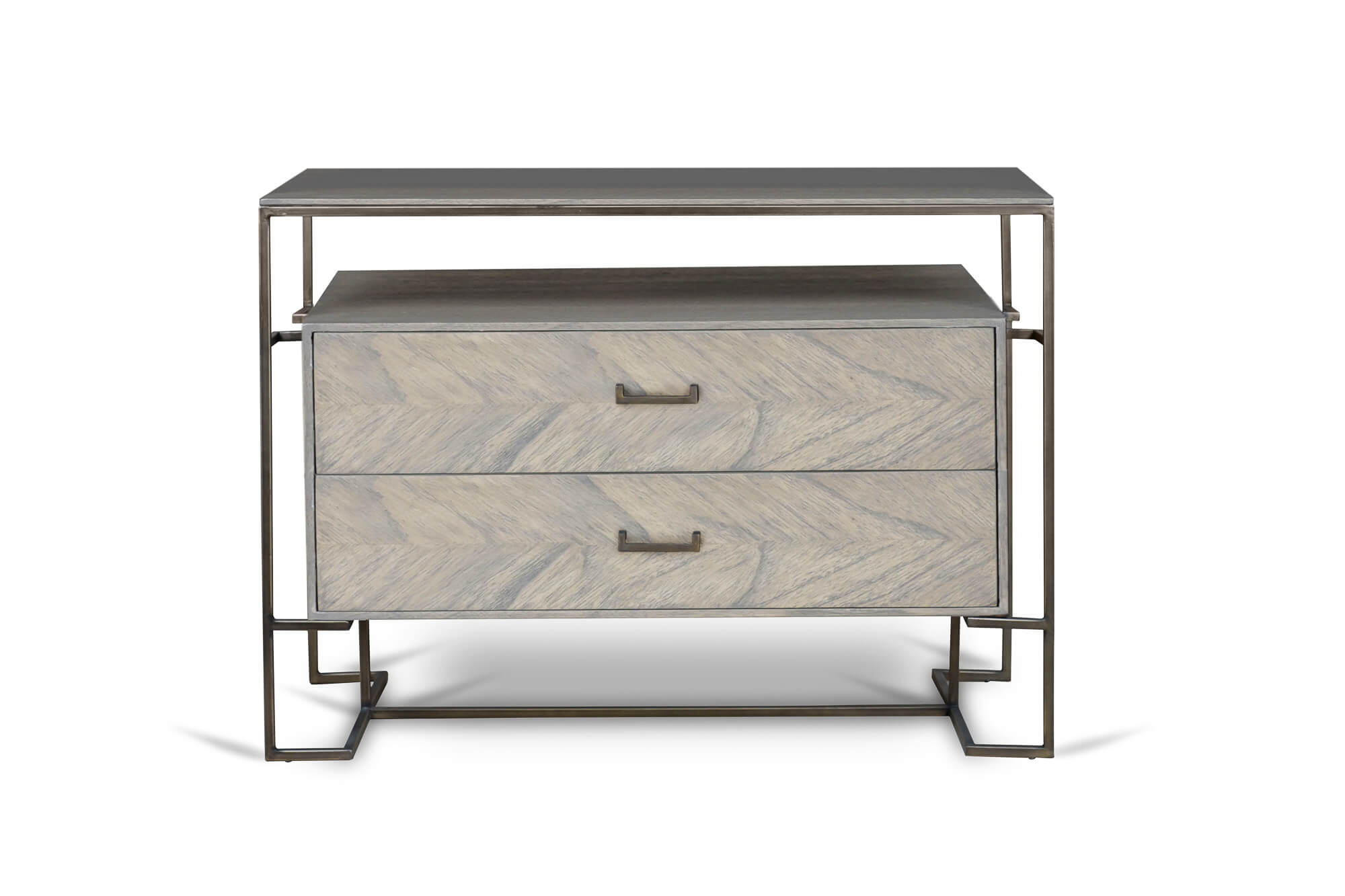 La cómoda Mfanya es una pieza de diseño moderno con el acabado New Dark Ivory que destaca por su exquisitez artesanal. Esta cómoda fue creada a partir de una combinación única entre madera de Mindi y metal con acabado bronce oscuro.