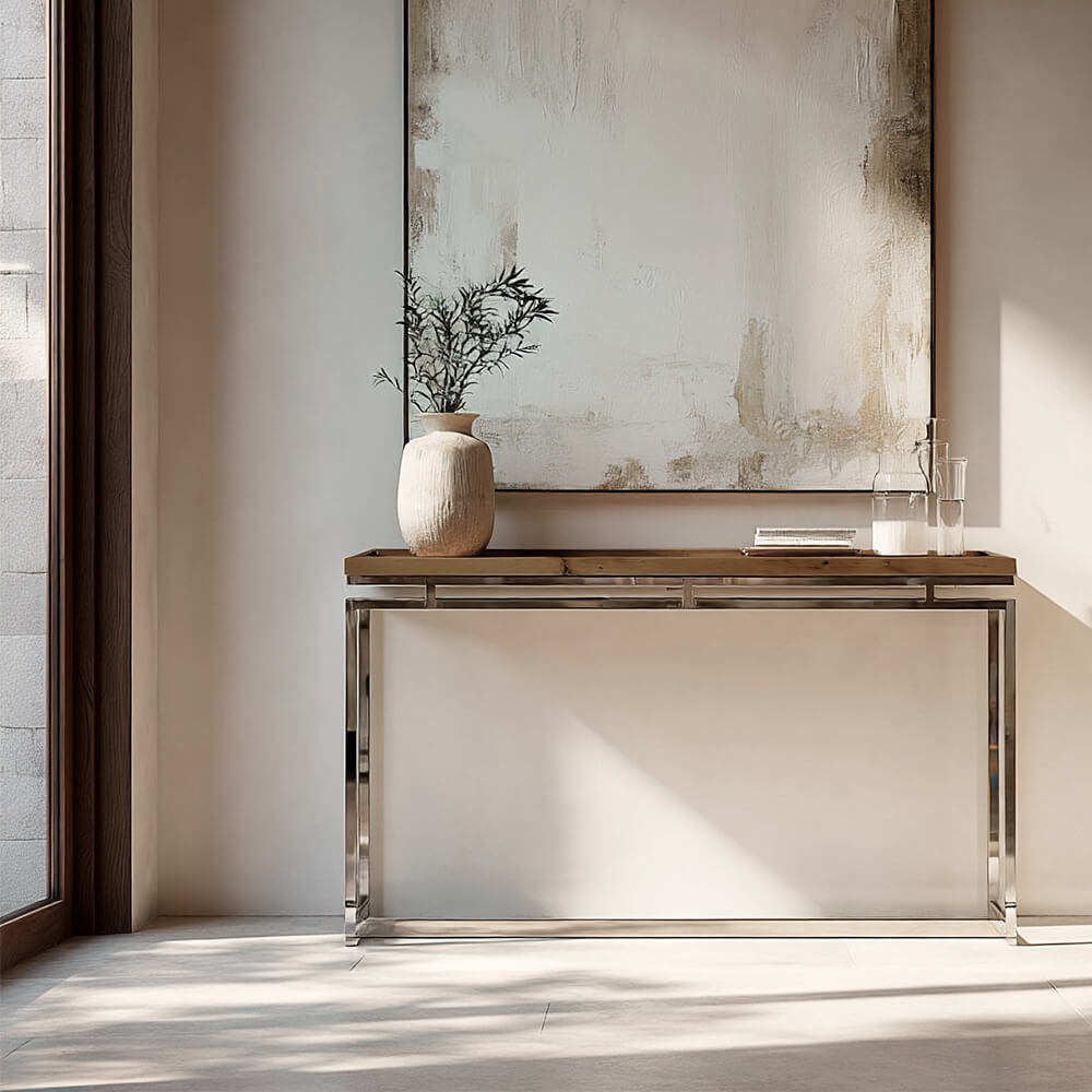 Introduce un toque de autenticidad y estilo industrial en tu espacio con nuestra consola Queribus. Fabricada en madera maciza de olmo reciclado y complementada con detalles metálicos, esta pieza fusiona la calidez de la madera con la robustez del metal. Cada consola Queribus es única, con la historia de la madera reciclada que la compone, aportando carácter y singularidad a tu decoración. Añade funcionalidad y un atractivo visual distintivo a tu hogar con esta consola que refleja la belleza de la artesanía y la sostenibilidad. ¡Descubre la elegancia atemporal de la consola Queribus en tu espacio!