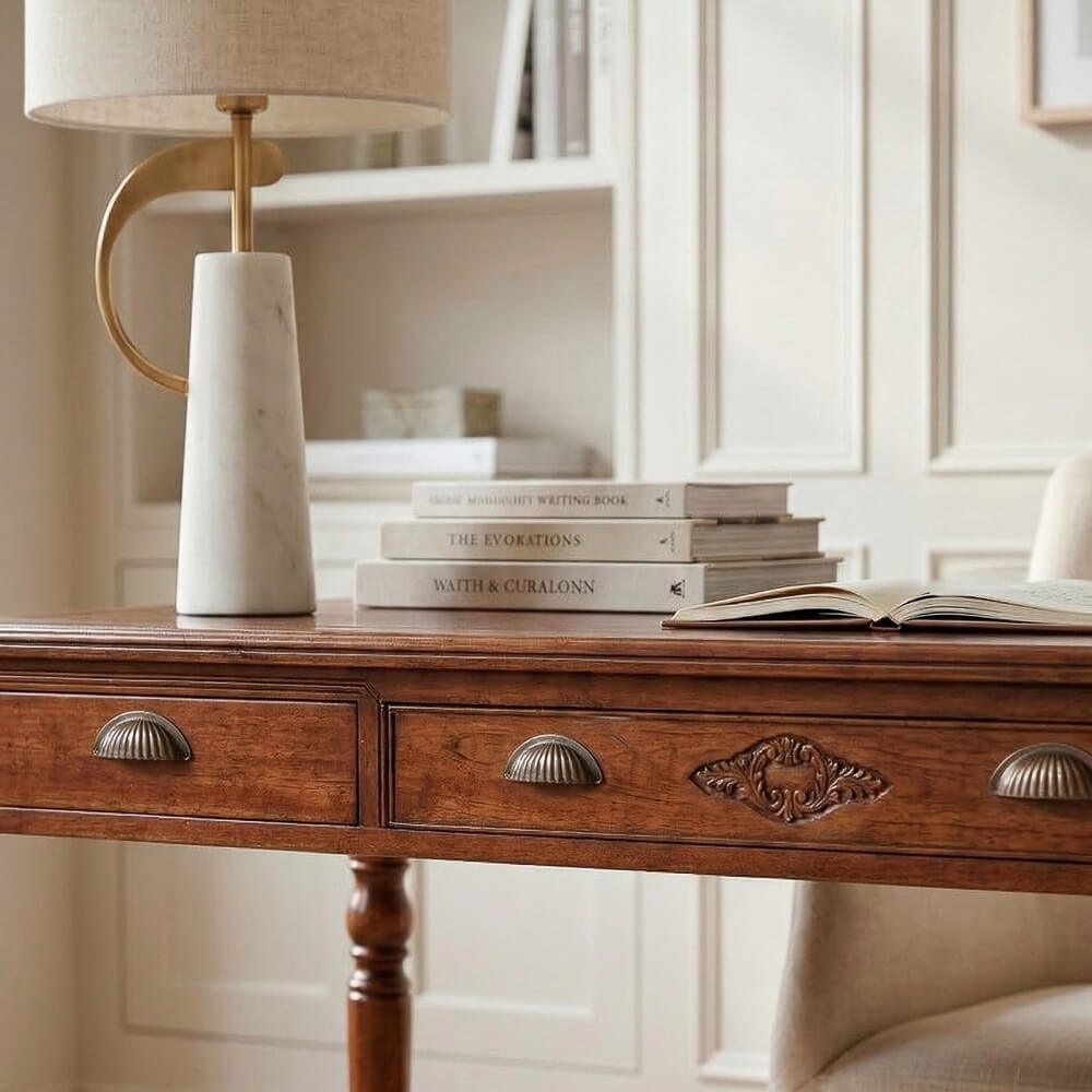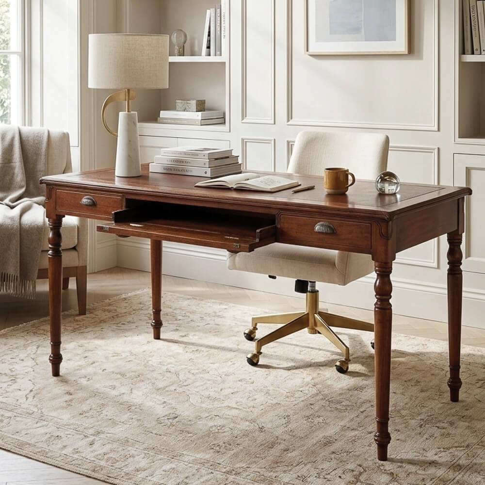 Presentamos el escritorio Arthur, una obra maestra realizada por artesanos en madera de caoba maciza y tallado a mano. Este escritorio es perfecto para aquellos que necesitan un espacio de trabajo en casa o en la oficina.