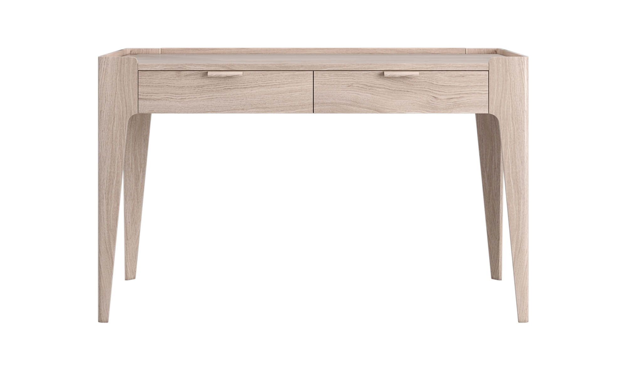 Mesa de escritorio 2 cajones realizada en chapa natural de roble o nogal y DM lacado.
