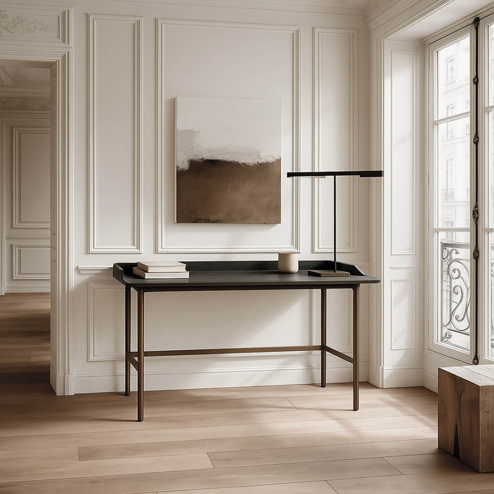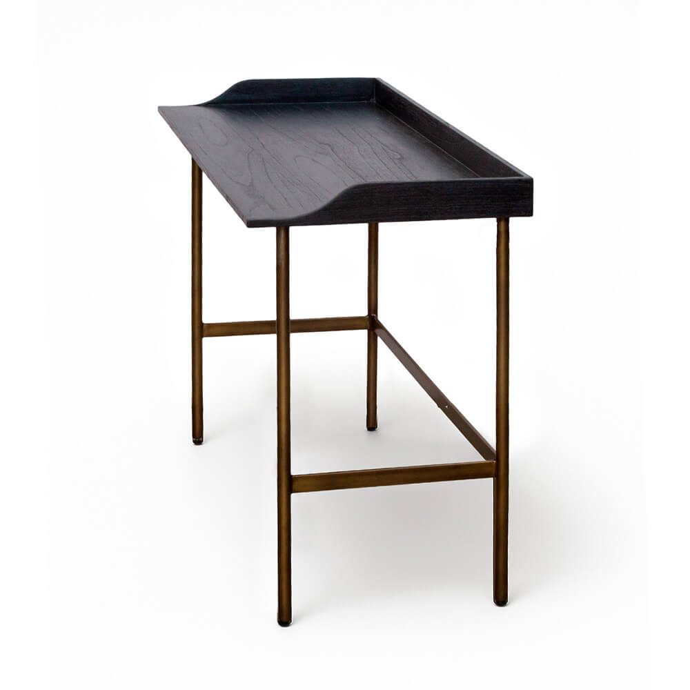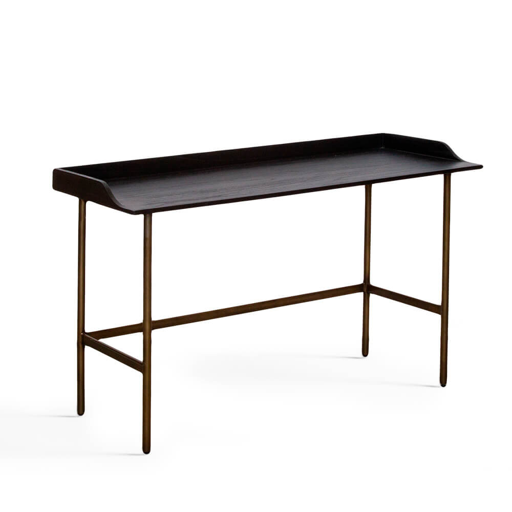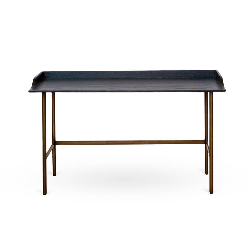 Crea un espacio de trabajo que refleje el estilo único de tu hogar. Con la mesa escritorio Rone, puedes experimentar la belleza de la decoración de inspiración étnica moderna. Elaborado con madera de mindi en color ebano y metal acabado en bronce, este escritorio de estilo de líneas simples y bien proporcionadas aportará calidez y carácter a cualquier espacio de trabajo. Haz de tu escritorio una pieza llamativa que capture la estética relajada de culturas exóticas.