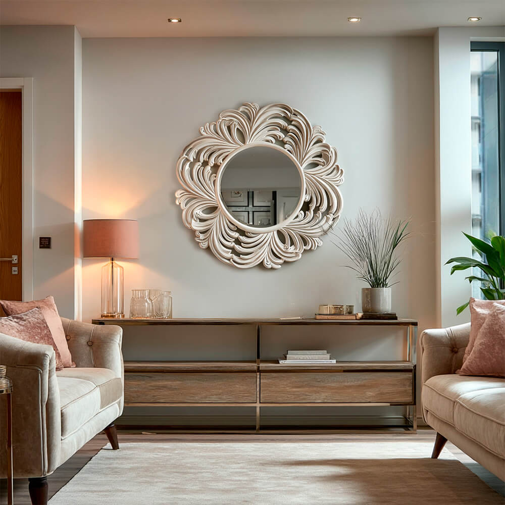 El estilo chic romántico afrancesado del espejo Fougère lo convierte en una elección ideal para quienes buscan añadir glamour y elegancia a sus espacios. Su versatilidad le permite complementar diferentes estilos decorativos, ya sea en salones, dormitorios o recibidores.