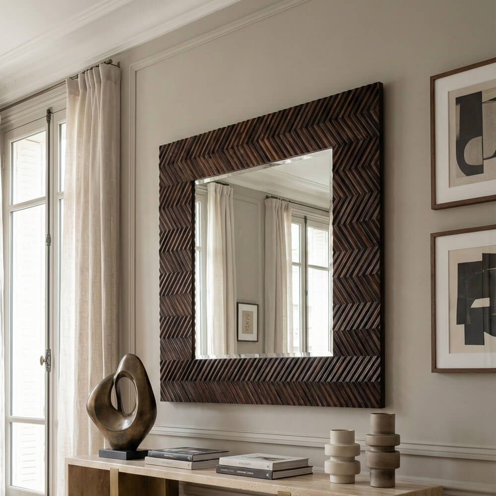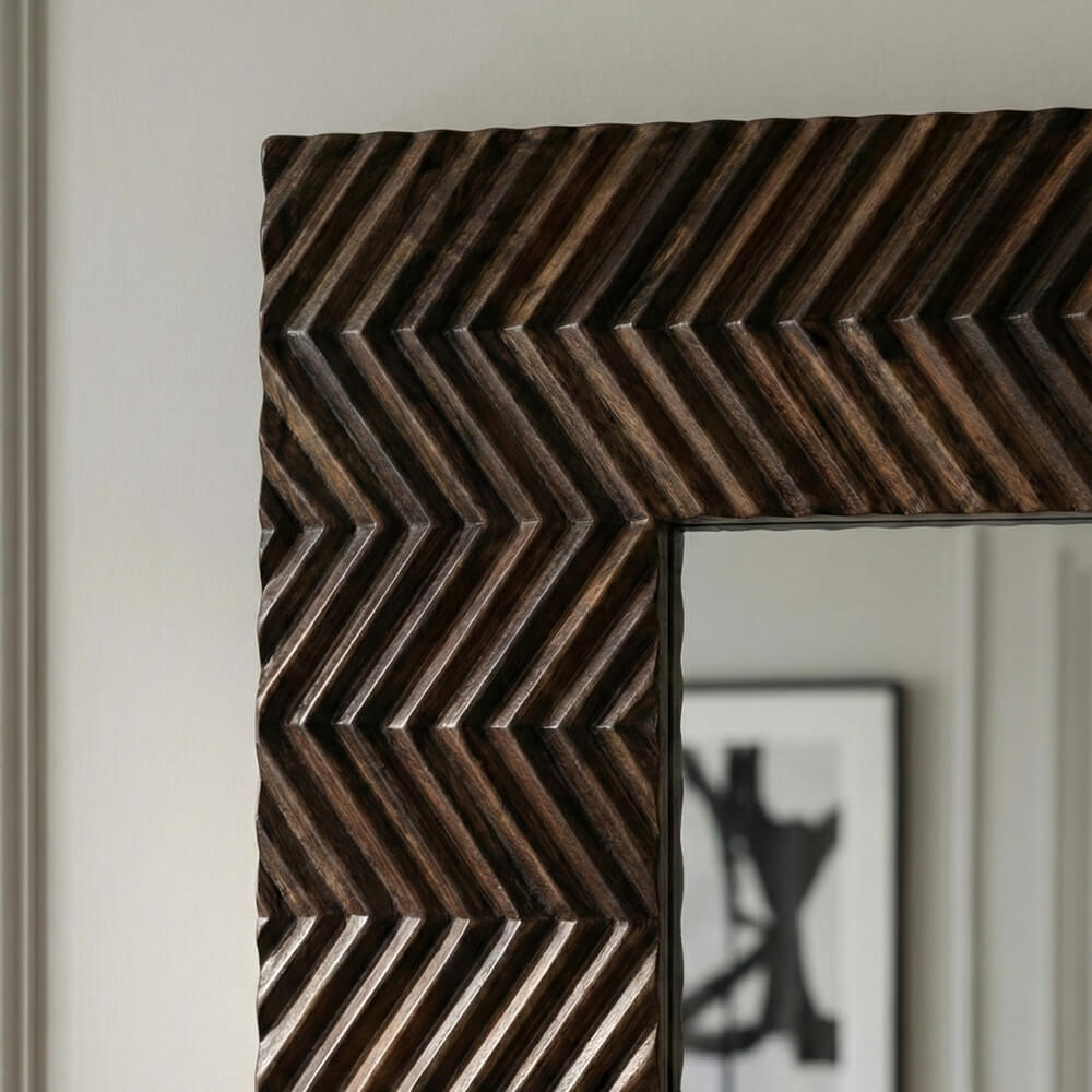 ¿Buscas ese espejo perfecto para completar tu habitación? Este impresionante espejo rectangular tiene un marco de madera maciza de mindi tallado a mano con motivos étnicos. Con una variedad de acabados disponibles, agregará un toque de sofisticación y estilo a cualquier habitación de su hogar, desde la sala de estar hasta el pasillo. Este precioso espejo rectangular es realmente único y será un complemento ideal para cualquier espacio.