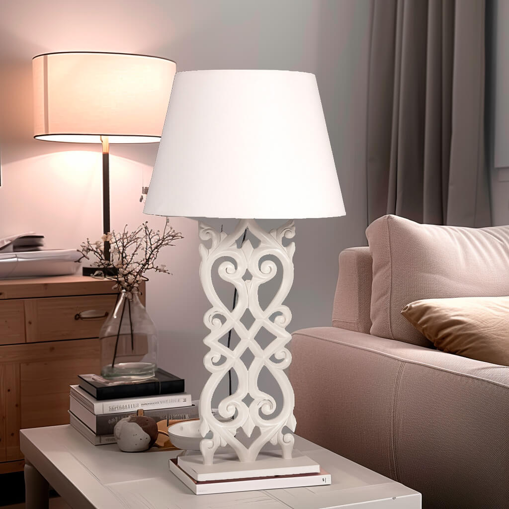 En resumen, la lámpara de mesa Gisors, realizada artesanalmente en metal y pintada a mano en un tono blanco roto, es la elección perfecta para aquellos que buscan un estilo chic romántico y vintage afrancesado. Su elegante glamour y su diseño encantador añaden un toque distintivo a cualquier espacio. Deja que la lámpara de mesa Gisors ilumine y embellezca tu hogar, creando una atmósfera mágica y sofisticada.