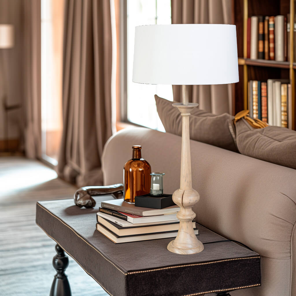 La lámpara de mesa Beynac es una pieza excepcional que cautivará con su belleza y encanto. Realizada a mano y tallada por expertos artesanos en madera de mindi, cada detalle de esta lámpara ha sido creado con pasión y dedicación.
