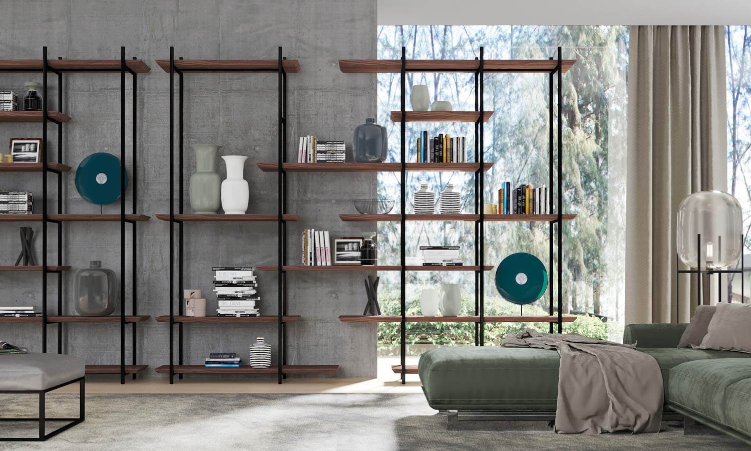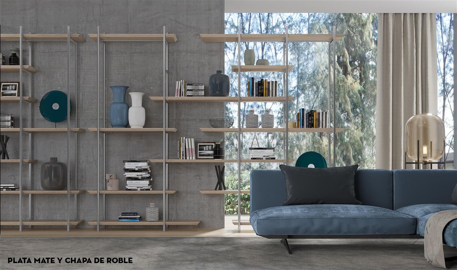 Además, puedes personalizar aún más tu librería seleccionando el color del metal en cualquier tono de la carta RAL. Esto significa que puedes adaptarla perfectamente a la paleta de colores de tu espacio, creando una pieza única que refleje tu estilo y personalidad.