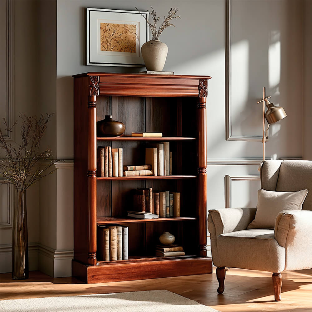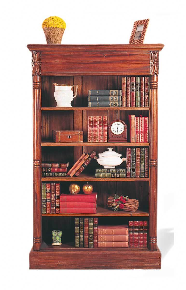 La librería que hemos escogido pertenece a la colección de Keen Replicas, y está fabricada con la mejor madera de caoba. Al contar con cinco baldas, es ideal si además de libros queremos poner en alguna de ellas cualquier objeto decorativo.