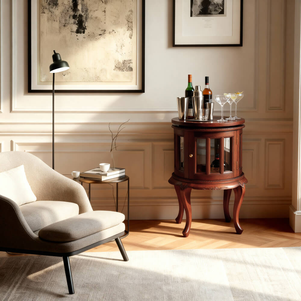 Pieza elaborada artesanalmente en madera de caoba maciza. Acabado caoba anogalado.