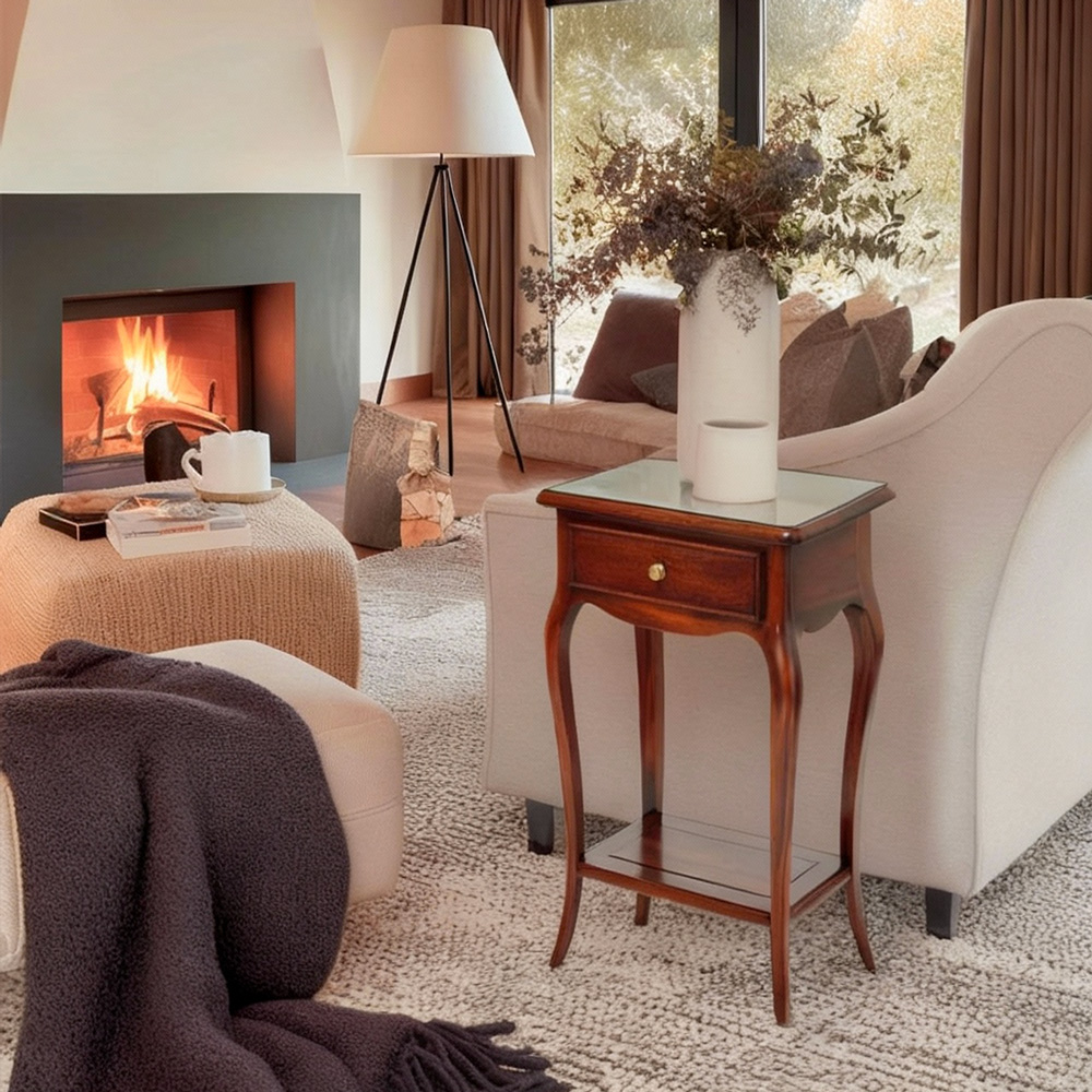 Aunque reciben la injusta denominación de mesitas auxiliares, lo cierto es que nos pueden ayudar a crear ambientes verdaderamente acogedores. Junto a un sofá, entre dos sillones, o al rescate de algún rincón, estas piezas siempre tienen algo que aportar.  Esta pieza en particular, ya sea como mesa auxiliar o de noche, aportara estilo y personalidad a cualquier ambiente, independientemente del estilo de la habitación.