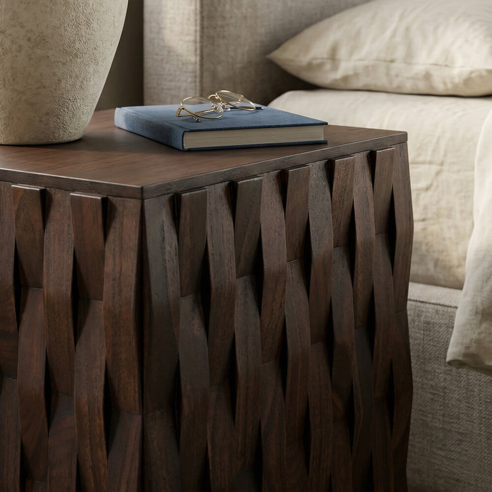 Esta mesa auxiliar se realiza artesanalmente para producir una pieza deslumbrante que añade interés a cualquier interior. Con su detalle con motivo étnico tallado a mano, el diseño recuerda las formas del arte africano.