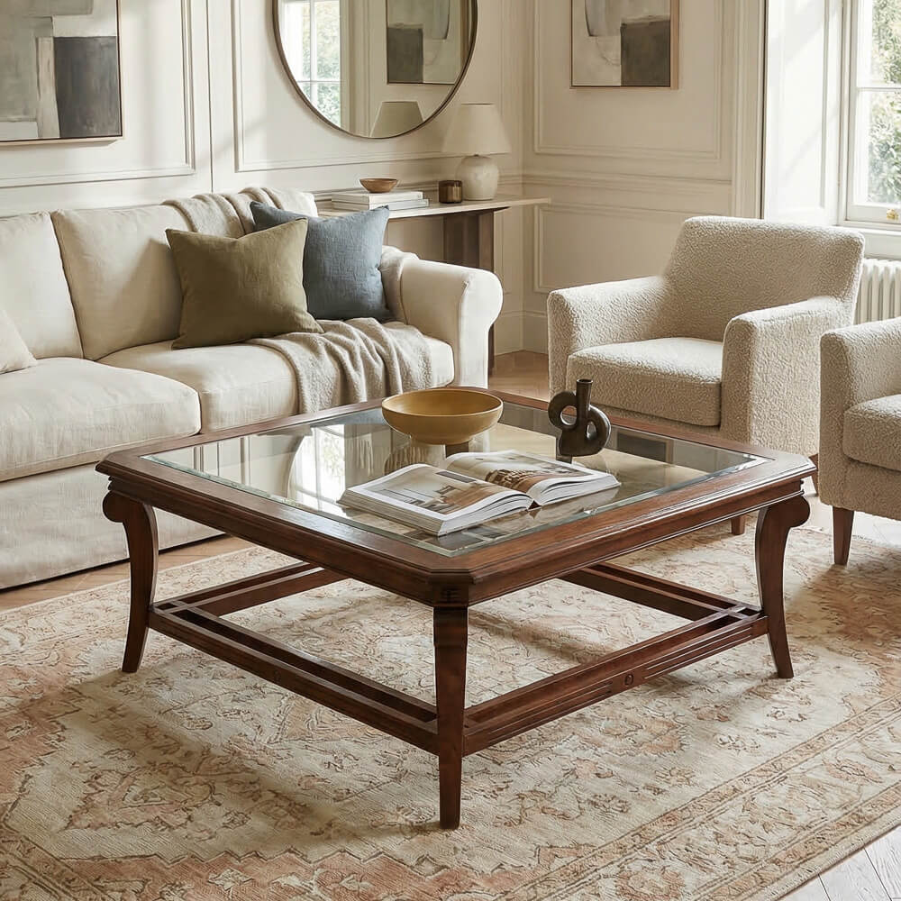 La mesa de centro es una de las piezas fundamentales en cualquier salón. Son perfectas para cuando tenemos visita y queremos sacar algo para picar. En estos casos la mesa de comedor es demasiado grande, por lo que necesitamos una más pequeña y accesible para cuando estamos sentados en el sofá. La mesa que os sugerimos pertenece a la colección Keen Replicas y se caracteriza por tener la tapa de cristal. Esto ayuda a dar ligereza a la pieza y le da un toque más sofisticado.