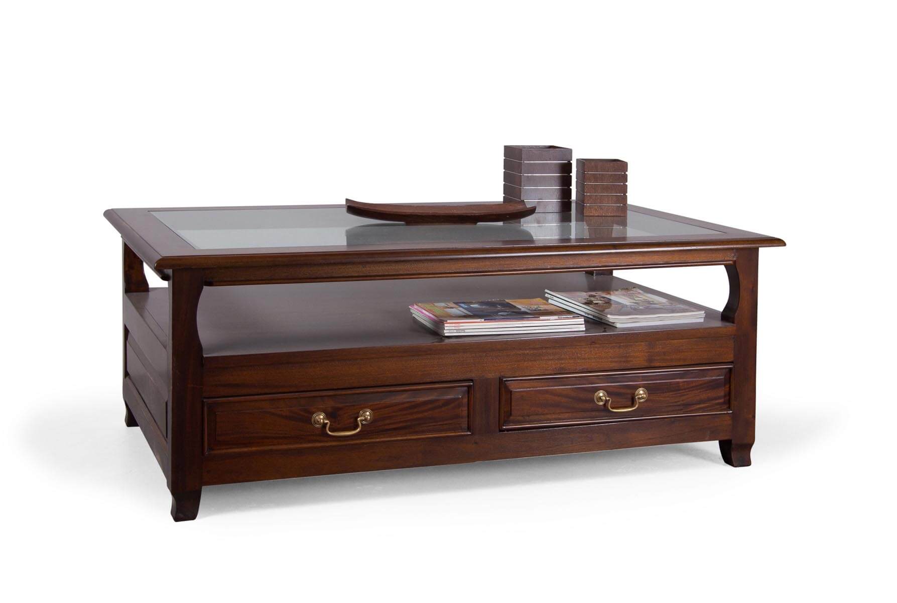 Esta Mesa de Centro Acristalada es un mueble hecho a mano, con un diseño elegante y funcional. Está construida con madera de caoba maciza y tiene un acabado tono caoba anogalada, lo que la convierte en una pieza resistente y duradera.