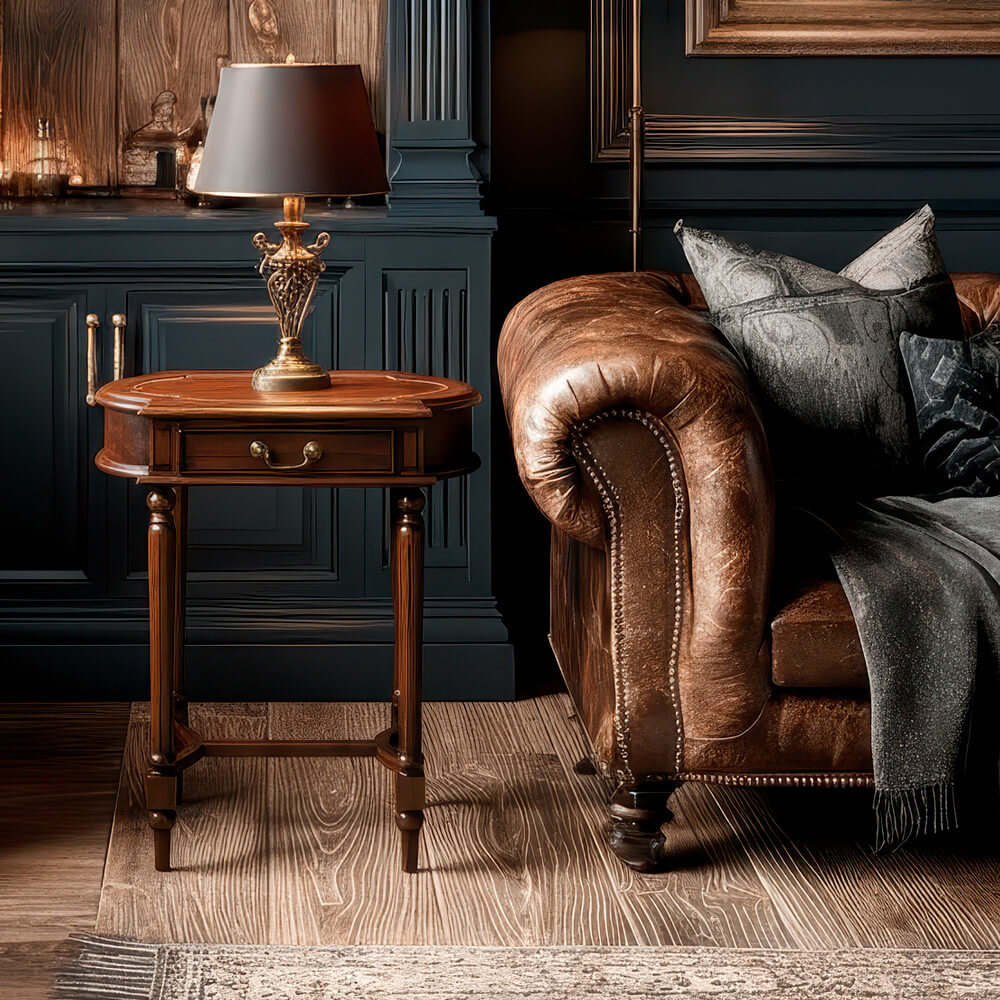 Descubre la elegancia atemporal de nuestra Mesa Auxiliar con Tapa de Cuero, una joya de madera maciza elaborada con maestría artesanal. Esta pieza única fusiona la calidez de la madera maciza con la sofisticación del cuero, creando un mueble que destaca por su estilo refinado y durabilidad. Fabricada con cuidado y atención al detalle, esta mesa auxiliar refleja la calidad artesanal y se convierte en un punto focal en cualquier espacio. Añade un toque de distinción a tu hogar con esta pieza versátil y funcional que combina a la perfección la estética clásica con la practicidad contemporánea.