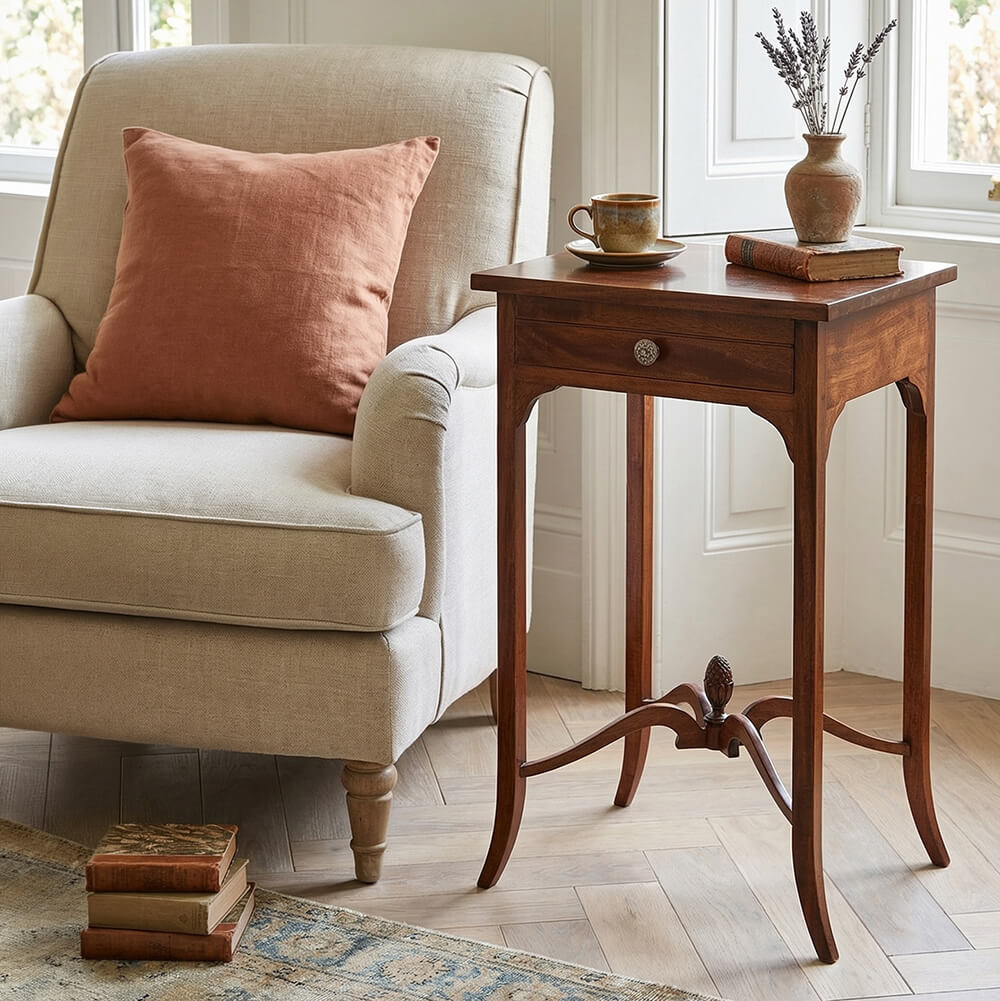 Descubre la funcionalidad y la elegancia atemporal con nuestra Mesa Auxiliar con 1 Cajón de madera maciza, meticulosamente fabricada de forma artesanal. Esta pieza única no solo ofrece espacio de almacenamiento conveniente, sino que también es un testimonio de la artesanía excepcional. Su diseño versátil se adapta a diversos estilos de decoración, aportando calidez y carácter a cualquier espacio.