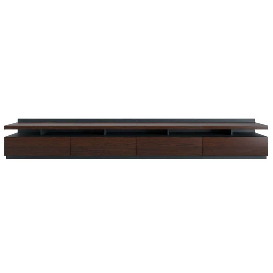 Mueble tv realizado en chapa natural de nogal o roble y DM lacado en gris antracita.