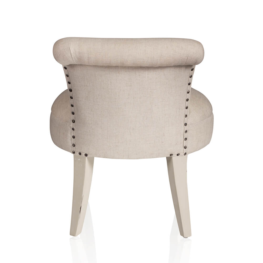 La silla Auxiliar Campagne fabricada a mano por nuestros expertos artesanos en madera de mindi, Su acabado en un tono blanco roto que le otorga un estilo chic romántico, vintage y afrancesado. Con su diseño y acabados cuidadosamente elaborados, esta silla se convertirá en una pieza clave de tu decoración de interiores.