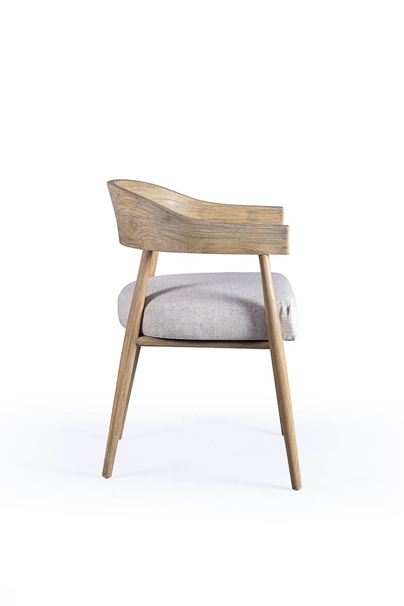 La silla Eva es una pieza exquisita de mobiliario, realizada a mano y tallada por expertos artesanos en madera de mindi. La belleza natural de esta madera se realza aún más con el acabado en un tono natural patinado, lo que le da a la silla una sensación de elegancia y sofisticación.