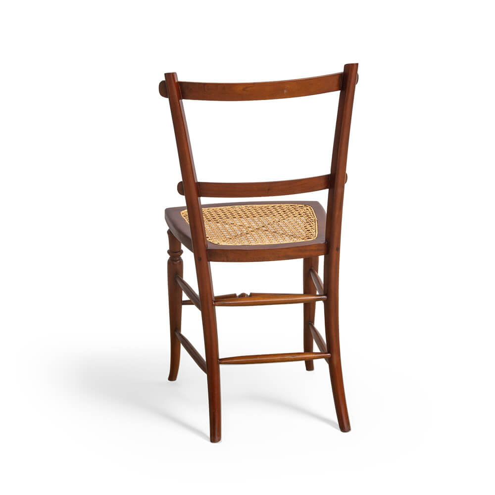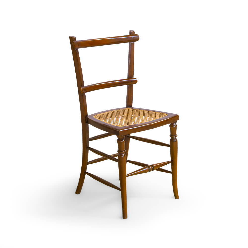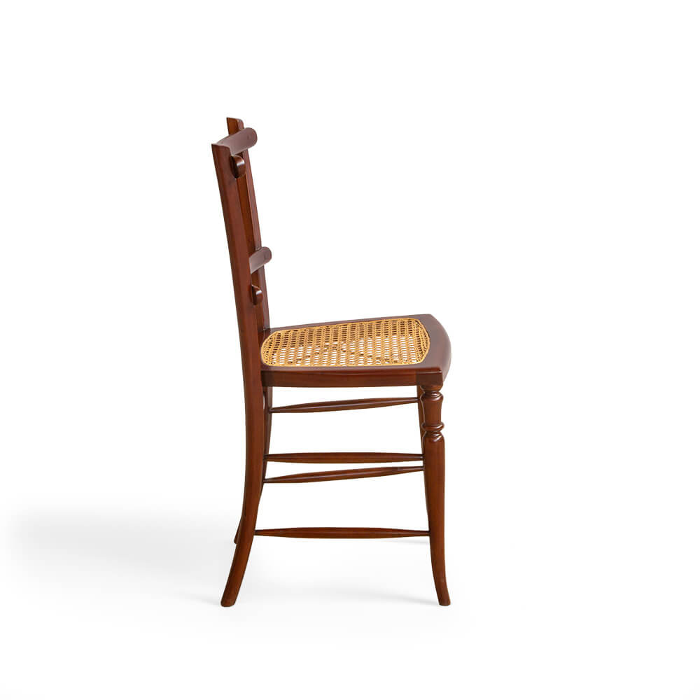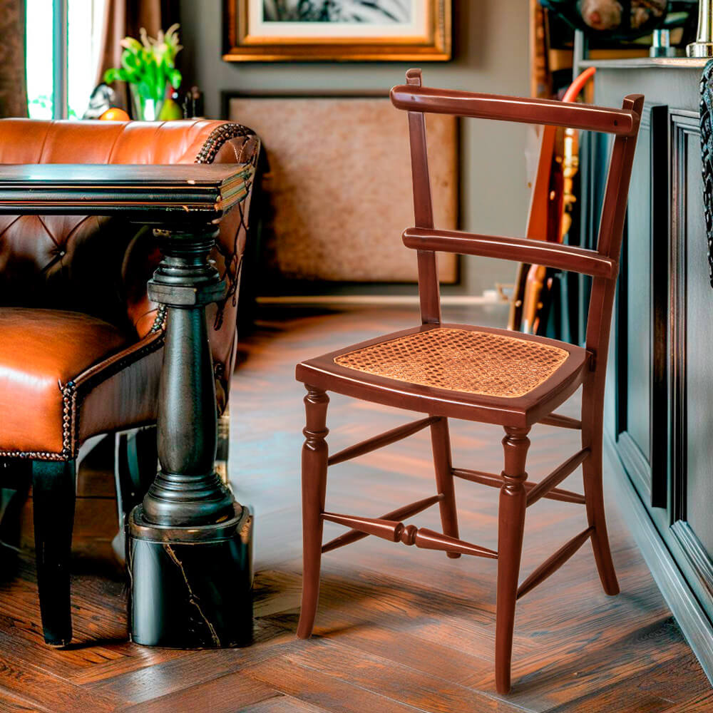 La cuidadosa selección de materiales y la experta mano de obra de los maestros artesanos que la elaboran hacen de esta silla una pieza única, exclusiva y duradera. El uso de caoba maciza, una madera noble y resistente, y el acabado en tono caoba anogalado, realzan la belleza natural de esta madera y le dan un aspecto elegante y refinado.
