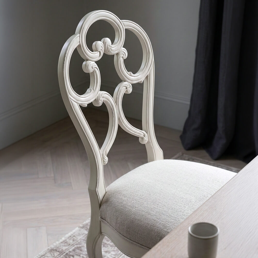 Además, su acabado en tono blanco roto le aporta una sensación de delicadeza y luminosidad que encaja perfectamente con cualquier tipo de decoración. El tapizado en tela de mezcla de lino y poliéster es suave al tacto y añade un toque de confort a la experiencia de sentarse en ella. Ideal para combinar con una mesa de madera oscura para crear un contraste de estilos y añadir personalidad a tu comedor. La silla Galbee es una opción perfecta para aquellos que buscan un ambiente elegante y sofisticado en su hogar.