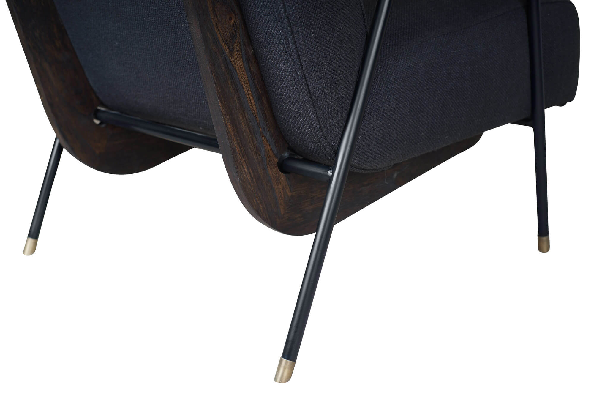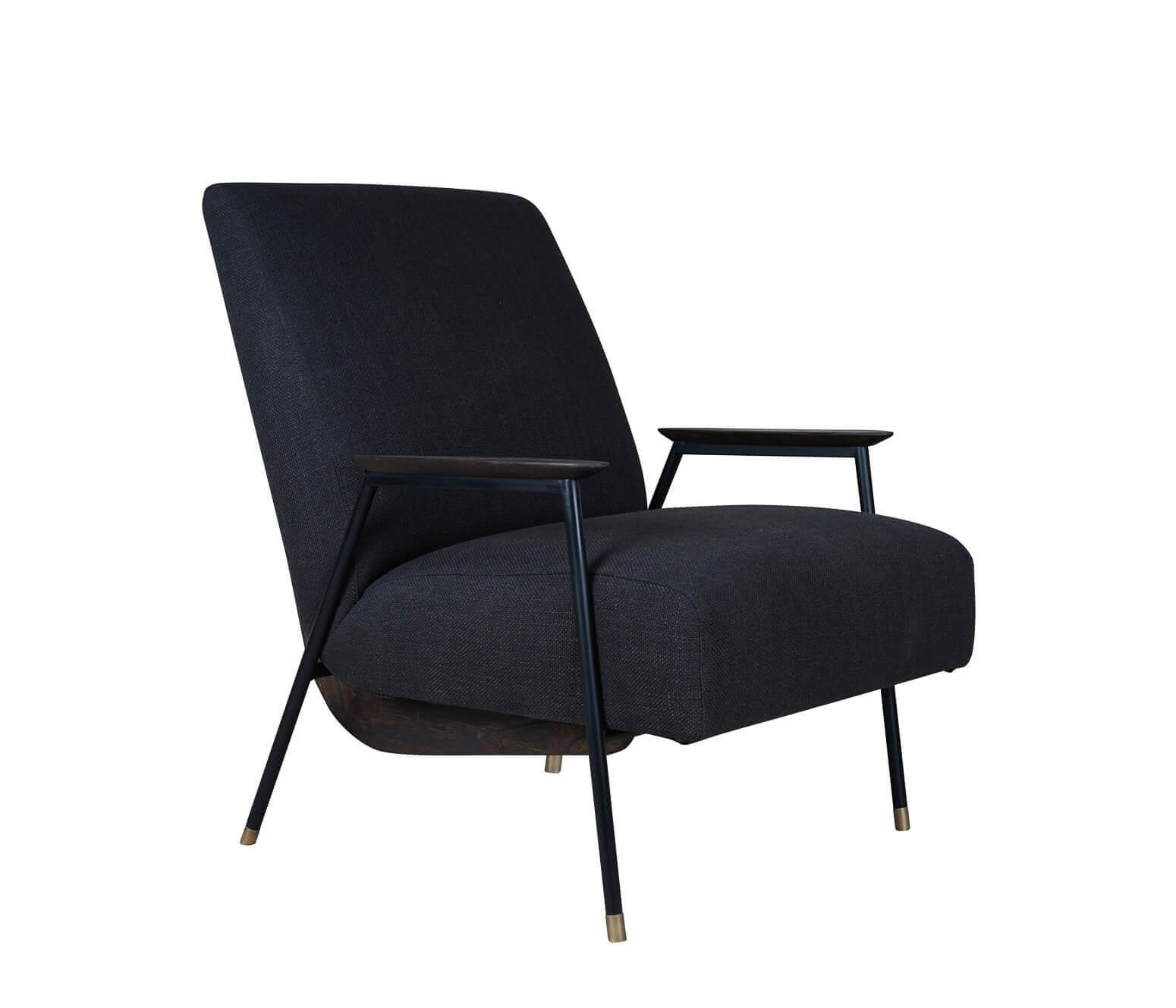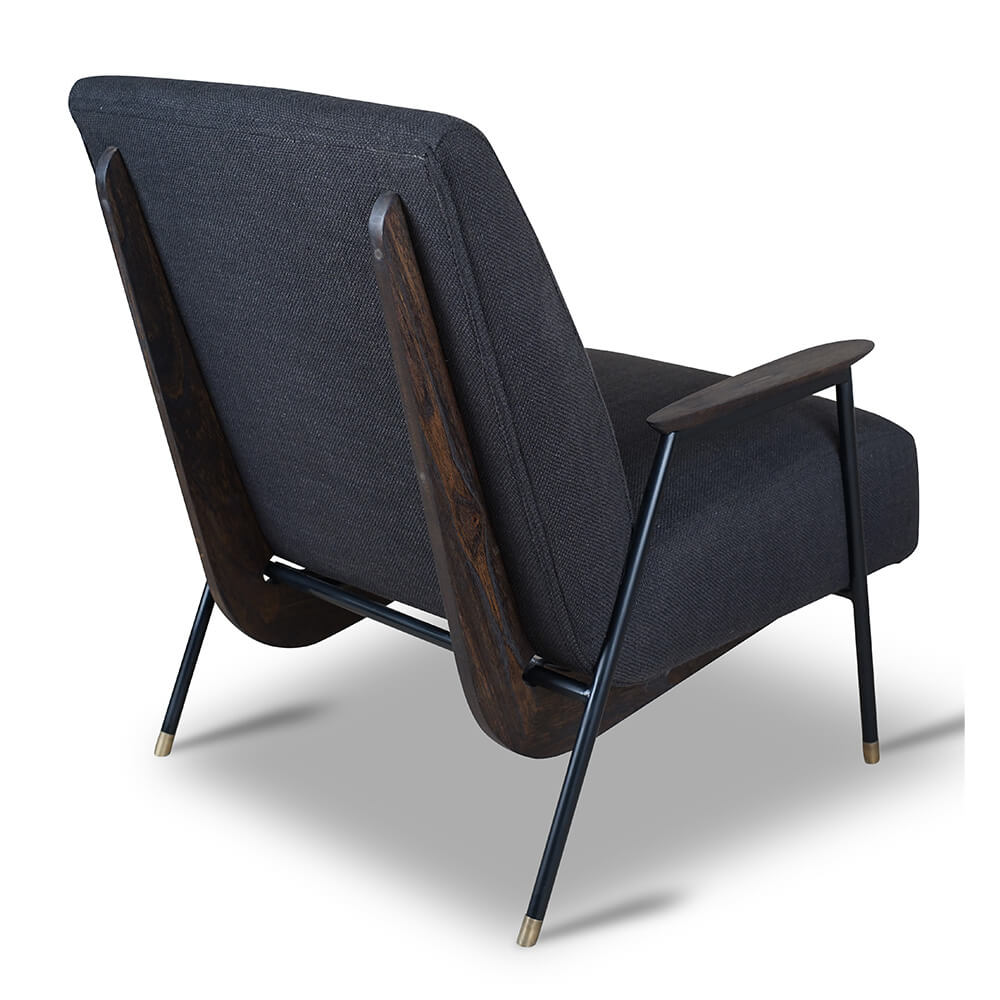 Este sillón Banna se distingue por su estructura metálica robusta acabada en negro con cascos en latón y detalles en madera de Mindi, con el acabado Roasted Coffe. Estos elementos combinados, armoniosamente, generan un diseño único y atemporal.