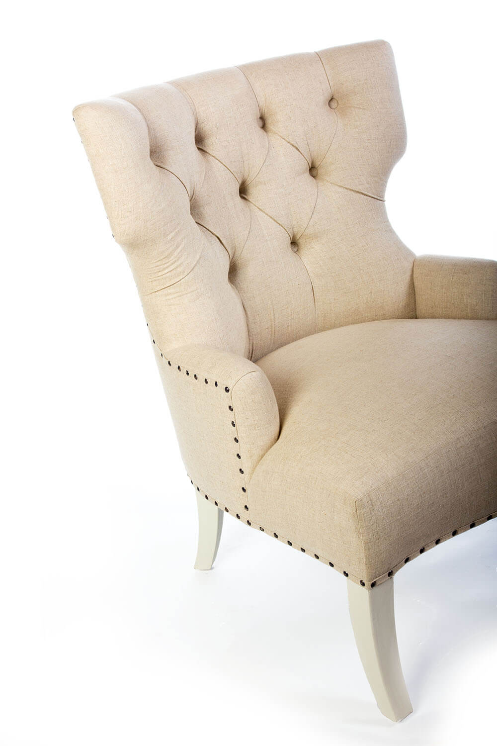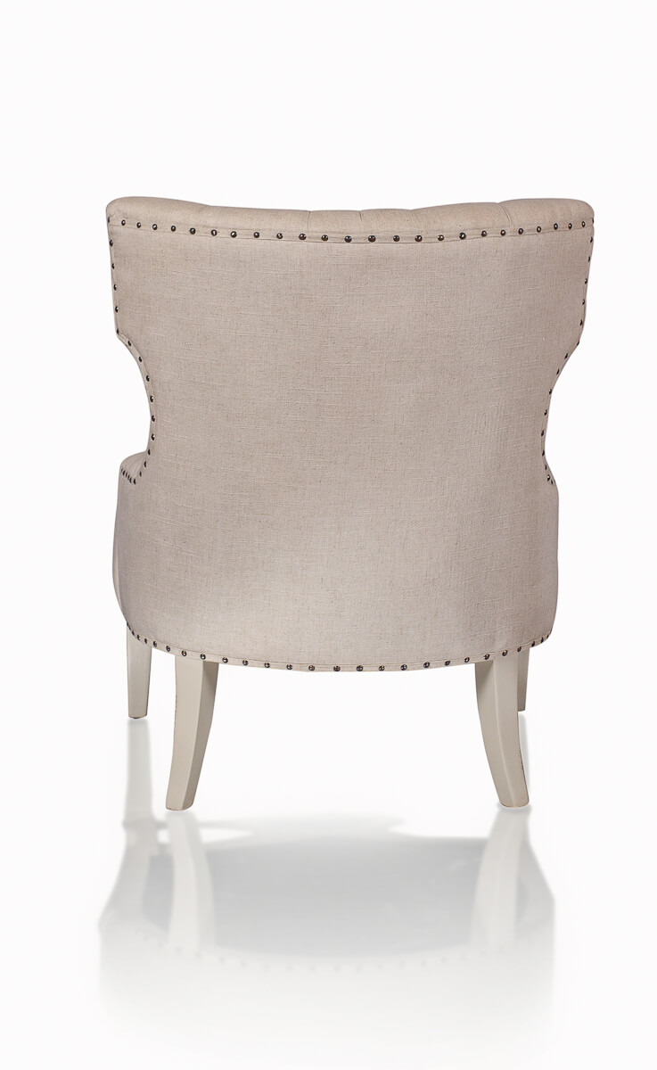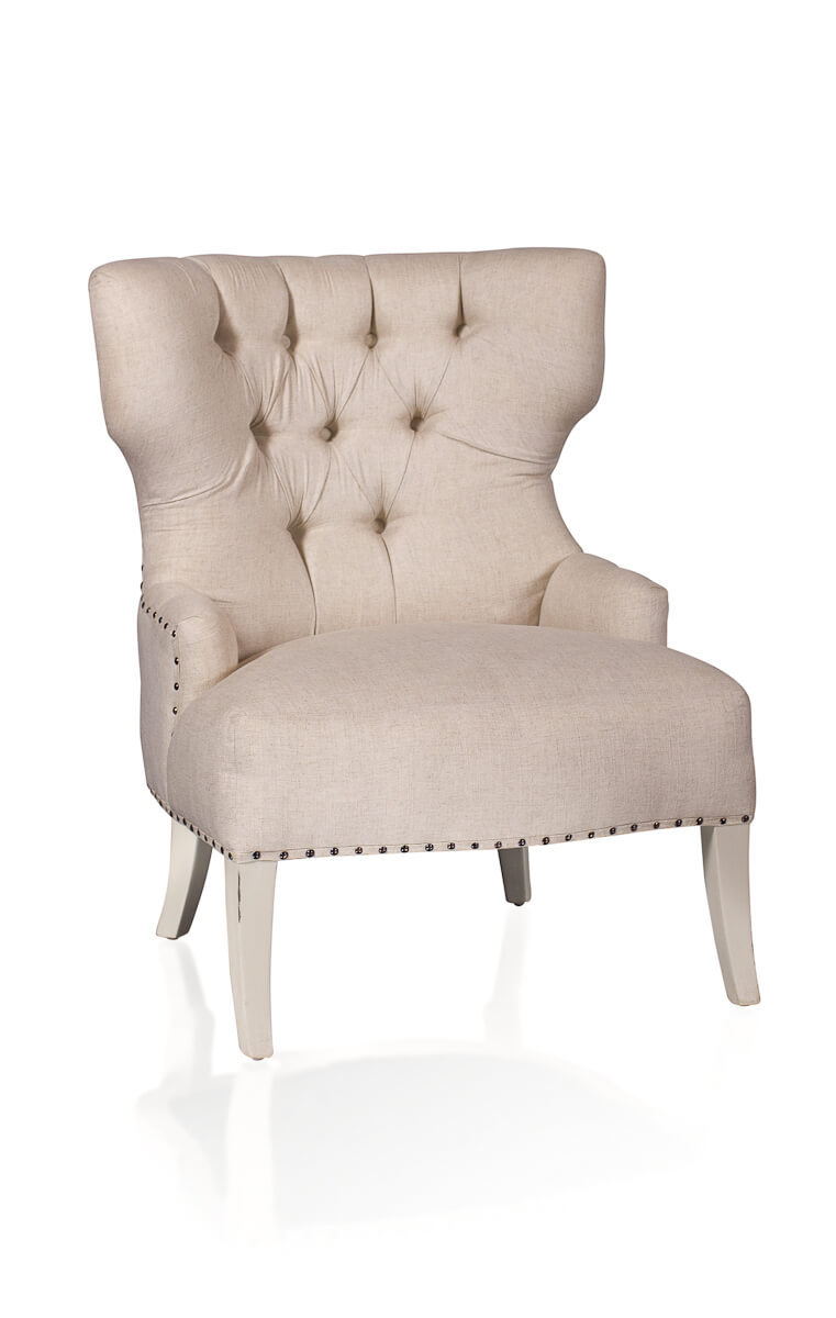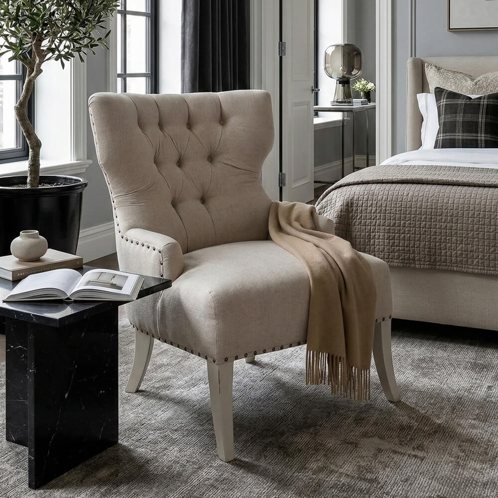 El respaldo está adornado con un hermoso capitoné que le da un toque de sofisticación, mientras que la estructura en forma de orejas te permiten descansar cómodamente mientras disfrutas de tu libro favorito o de una buena película.