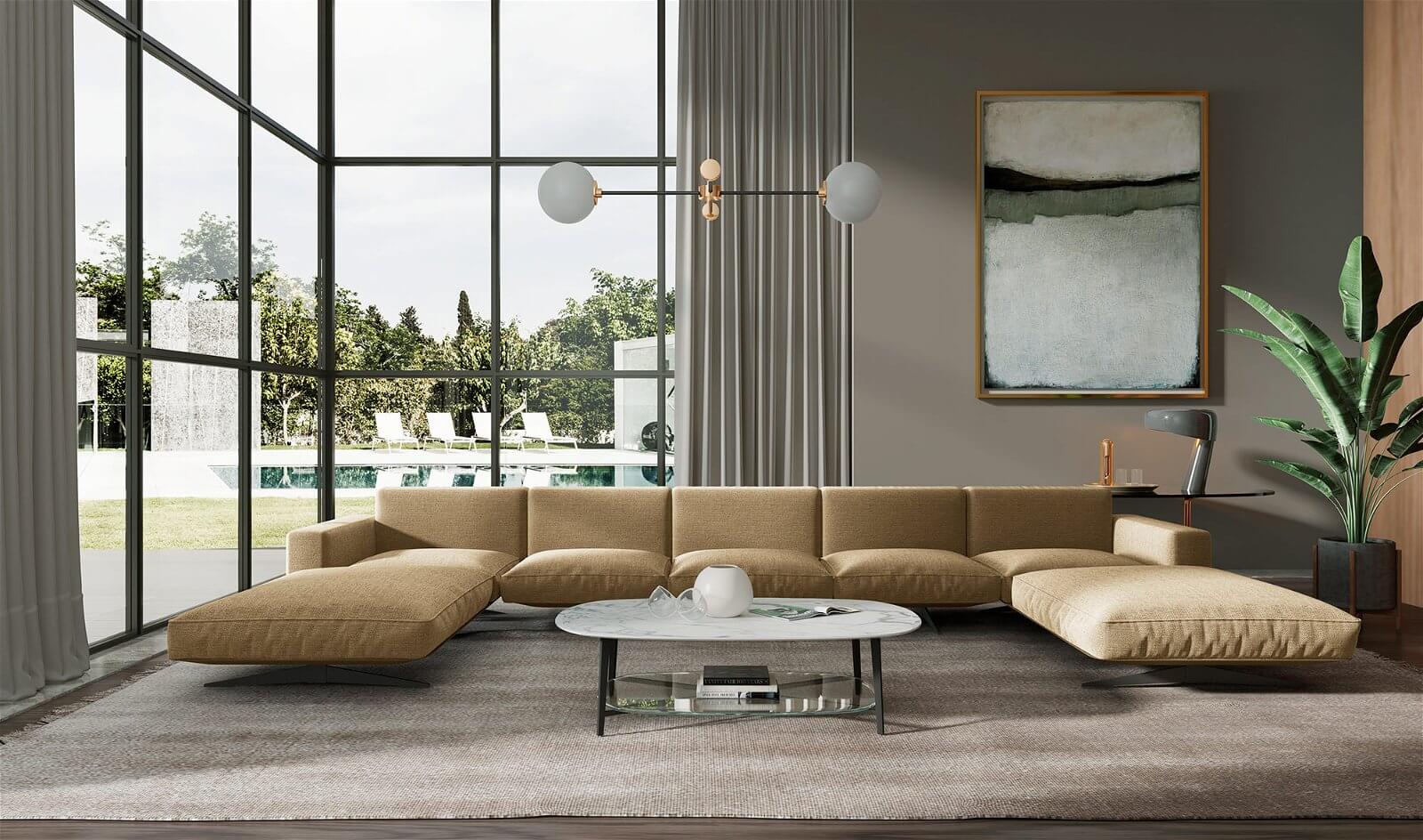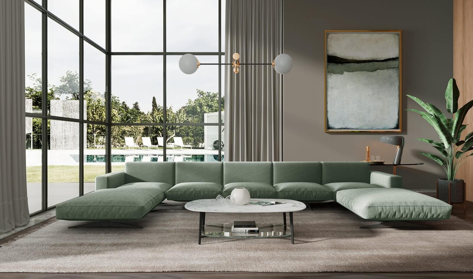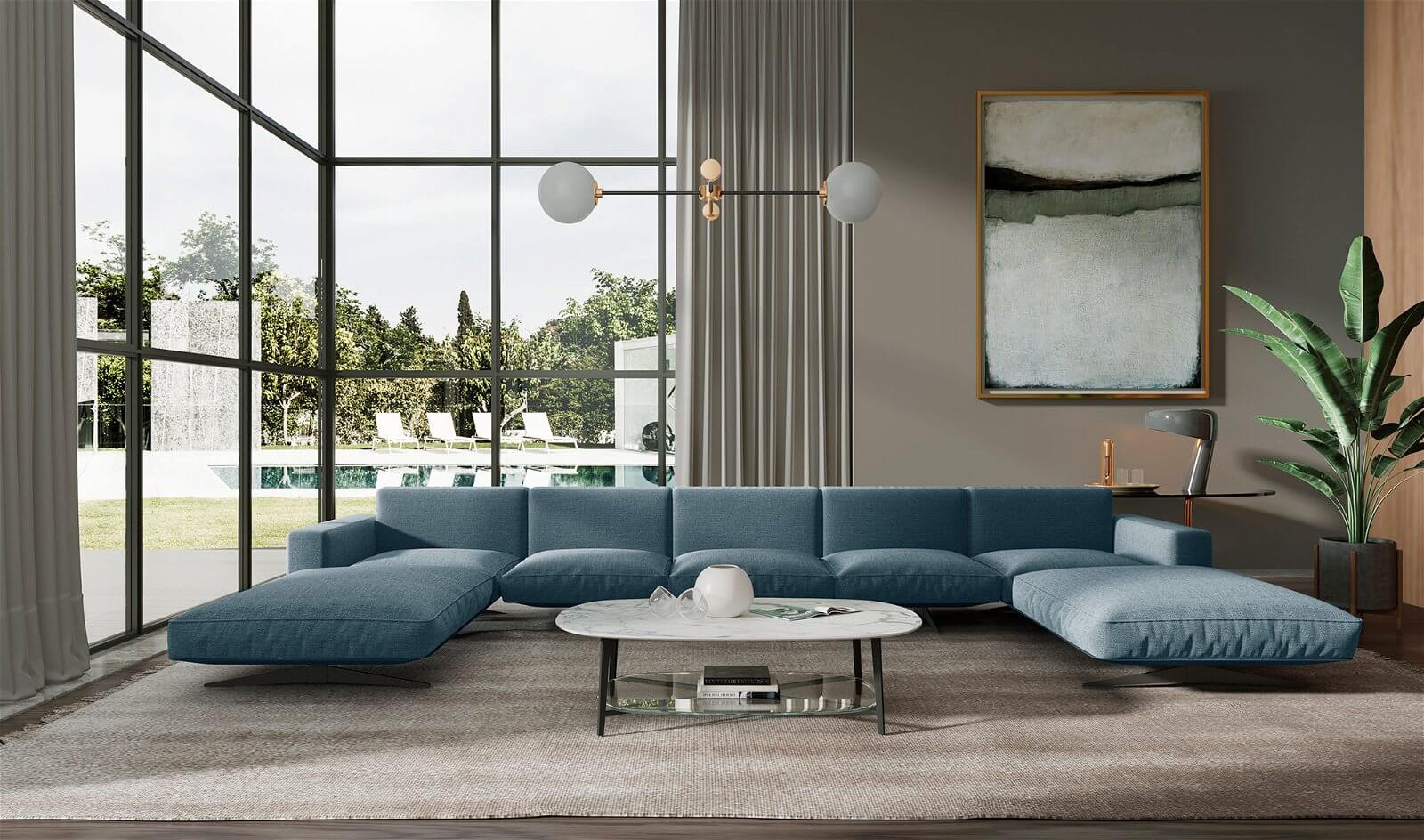 El sofá con chaise longue moderno Florencia será el centro de todas las miradas en tu salón. Su majestuosa presencia es ideal para los amantes del diseño italiano, característica que se ve acentuada en la calidad de sus acabados.