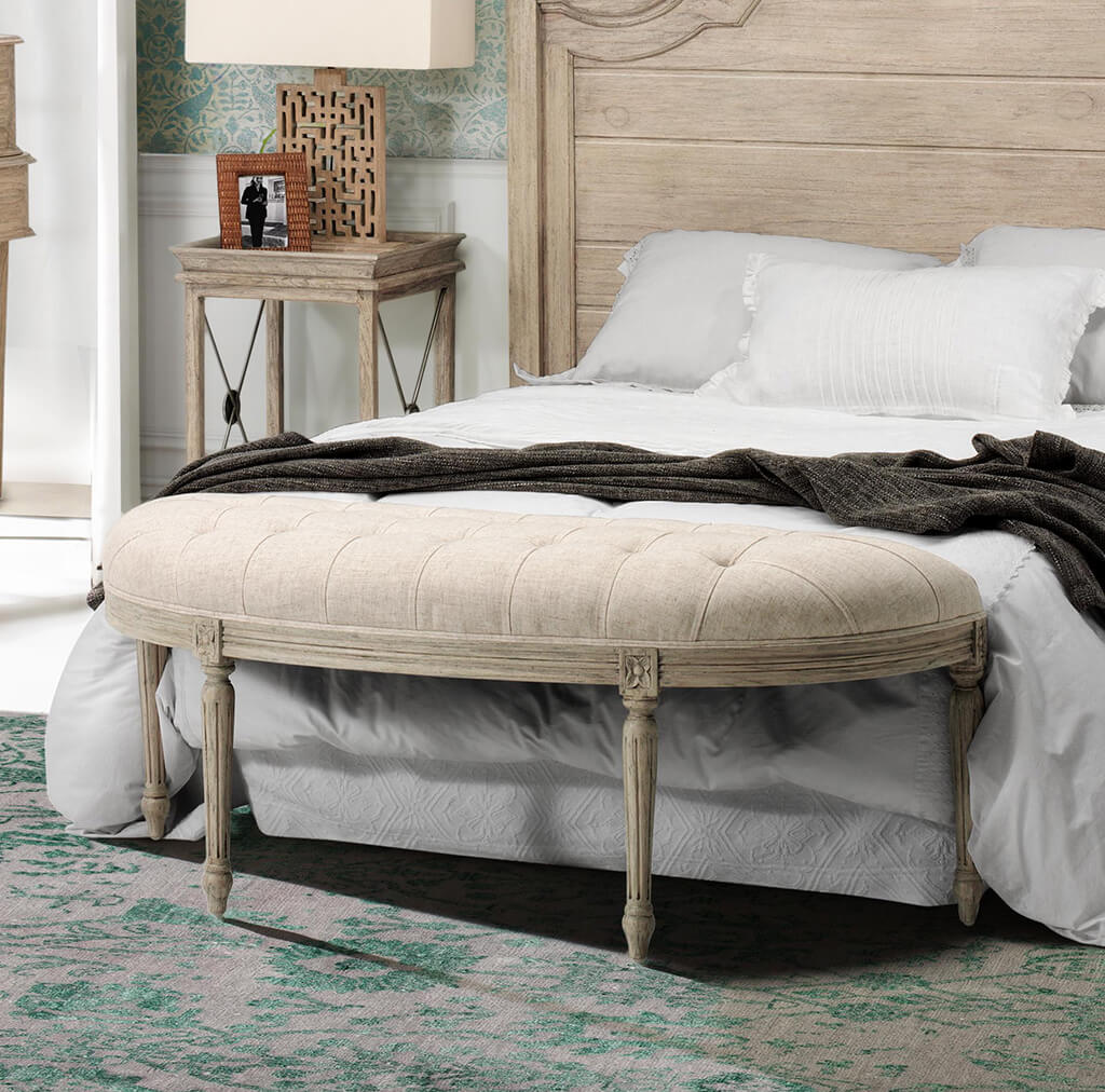 En el dormitorio, el Taburete San Luis puede ser colocado al pie de la cama, agregando un elemento decorativo y funcional. También es perfecto para las entradas, brindando un lugar elegante para sentarse al quitarse o ponerse los zapatos.