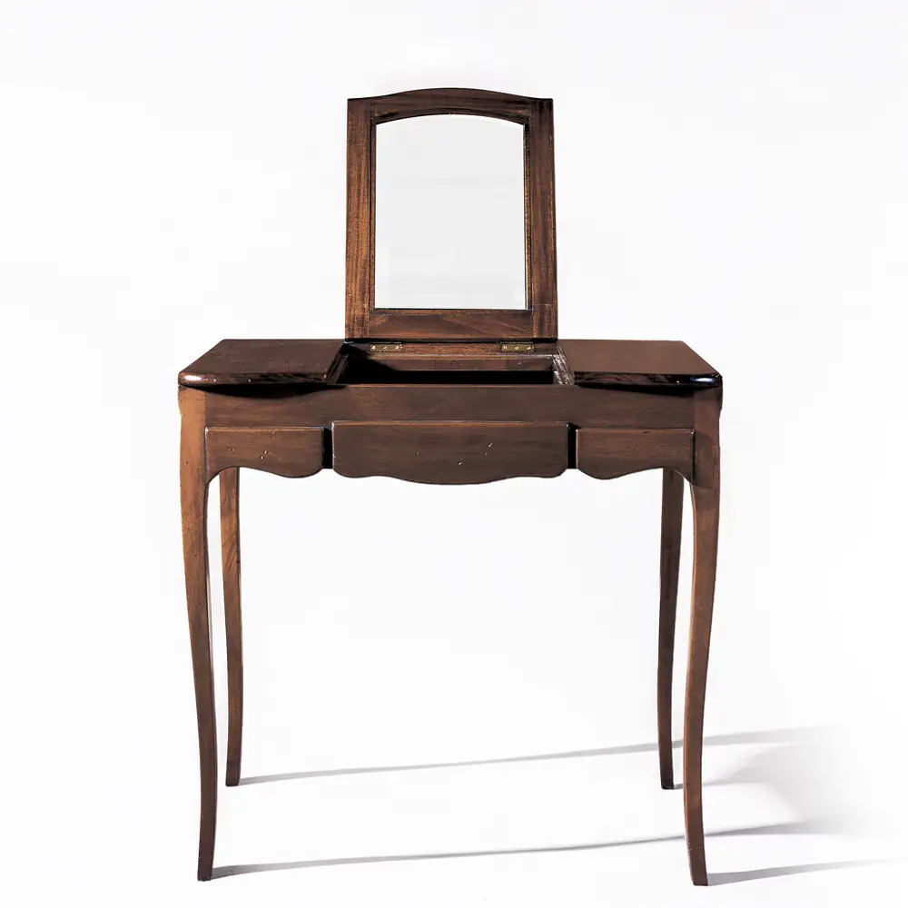 A qué mujer, y hombre, no le gusta arreglarse antes de salir de casa. Y qué mejor lugar para hacerlo que un romántico tocador como el que os sugerimos hoy. Se trata de una pieza de corte clásico, fabricada artesanalmente en madera de caoba maciza. Es perfecto si queremos dar un toque vintage a nuestro dormitorio, o si por el contrario queremos completar una decoración más clásica.