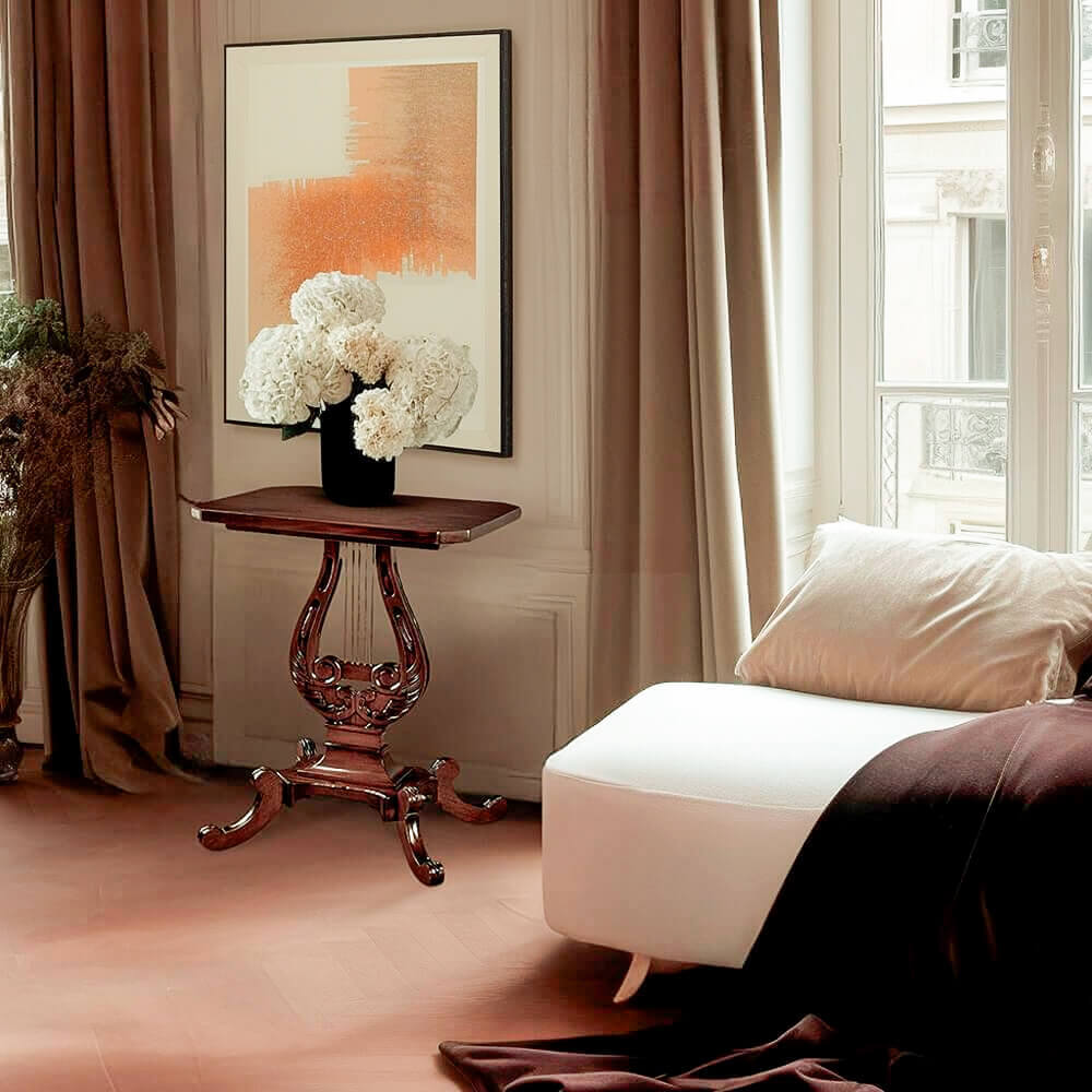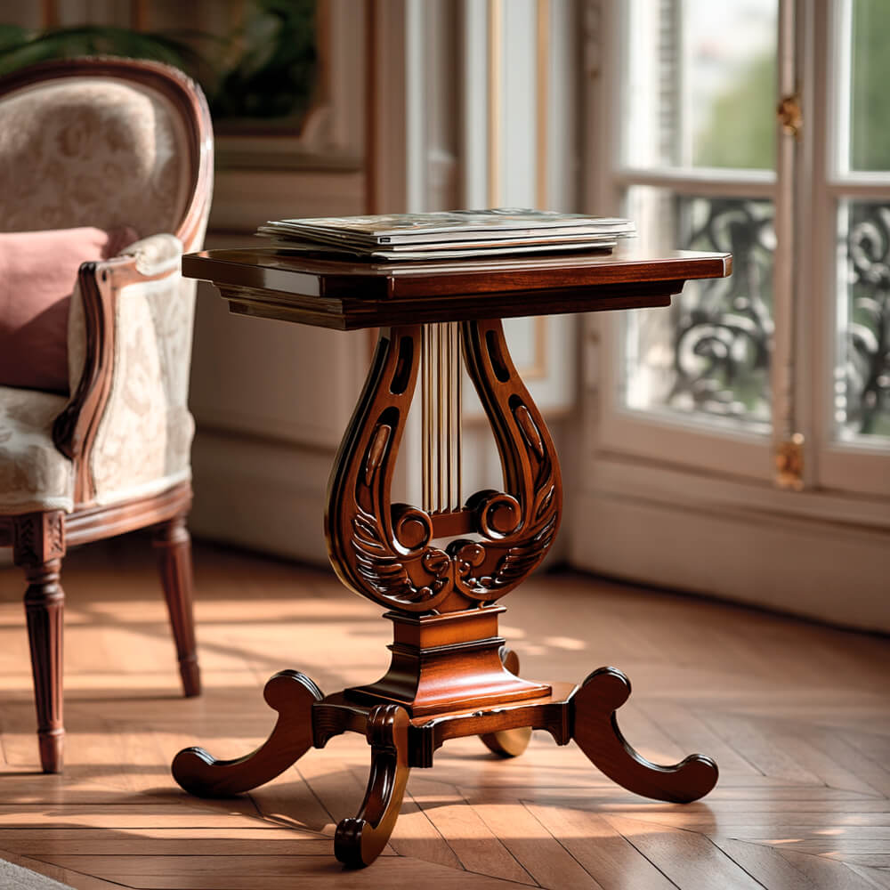 Sumérgete en la grandeza clásica con nuestro Velador Regencia Lira, una obra maestra de caoba maciza, elaborada con esmero artesanal. Este velador no solo es un mueble funcional, es una expresión de elegancia y calidad intemporal. Cada curva y detalle ha sido cuidadosamente esculpido a mano, creando una pieza única que refleja la esencia de la regencia. La caoba maciza proporciona durabilidad y calidez, mientras que el diseño artesanal añade un toque de lujo a tu espacio. Disponible ahora en nuestra tienda online. Descubre la perfección artesanal y añade un toque de regencia a tu decoración.