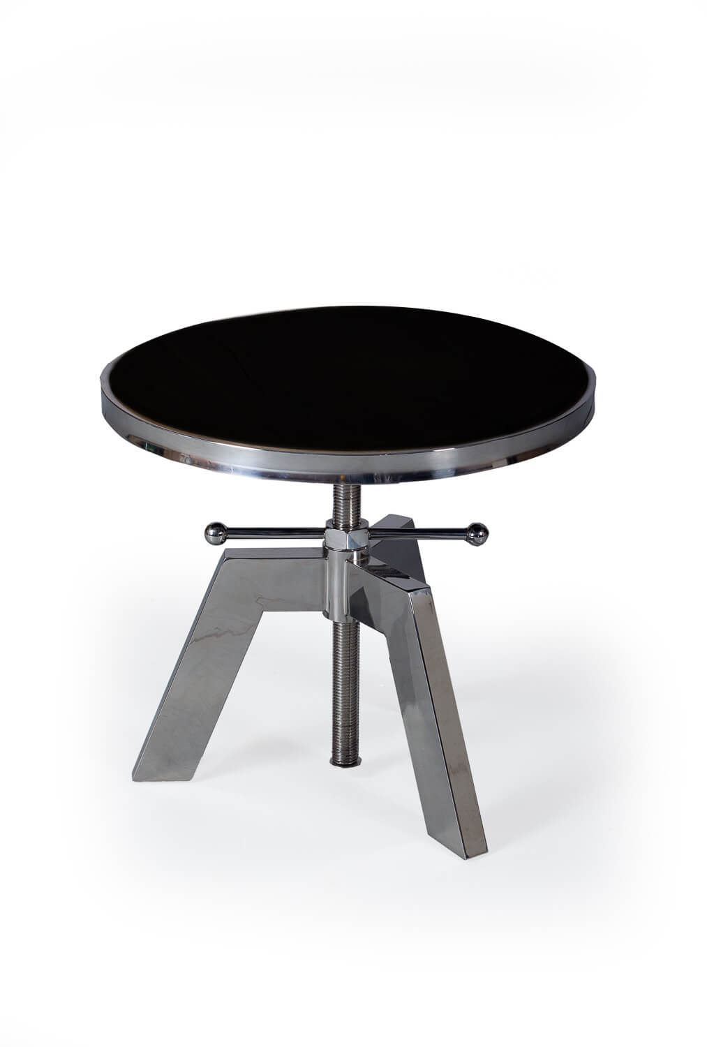 Realizado en cristal lacado y acero inoxidable. Ajustable en altura.